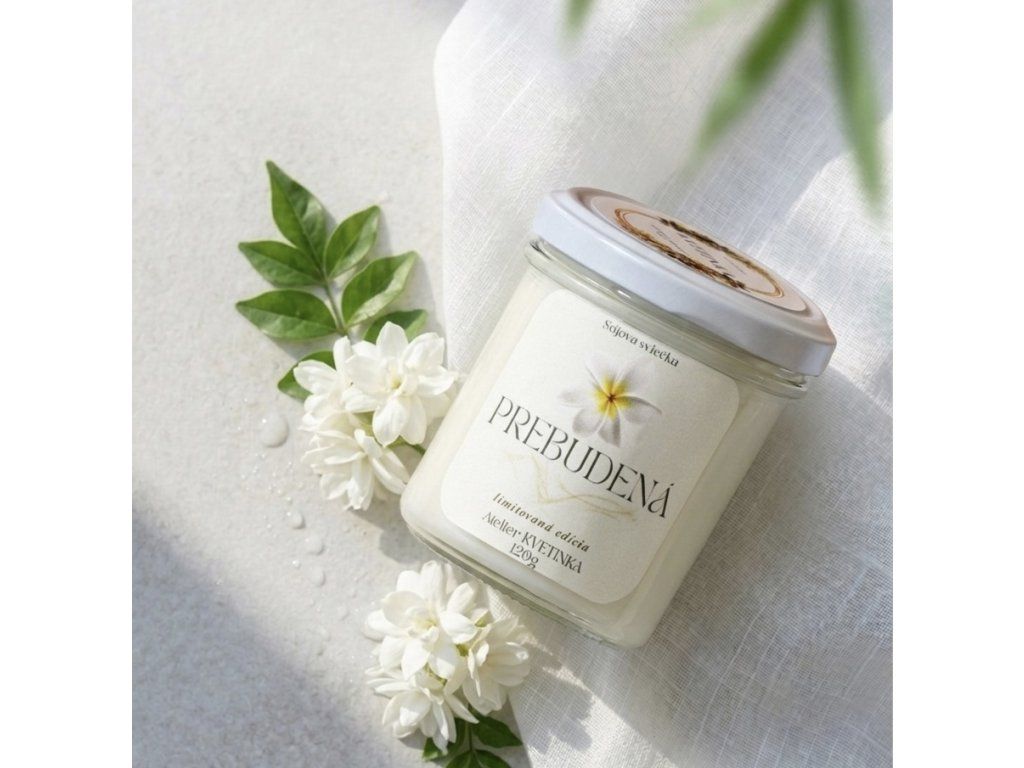 Sójová sviečka PREBUDENÁ (Limitovaná edícia) – Zelený čaj, opuncia a jazmín